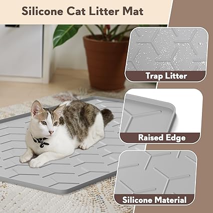 - Waterproof Silicone Kitty Litter Mat: The litter trapping mat features a leakproof with high-raised edges design that more effectively keeps water or urine from seeping into the floor