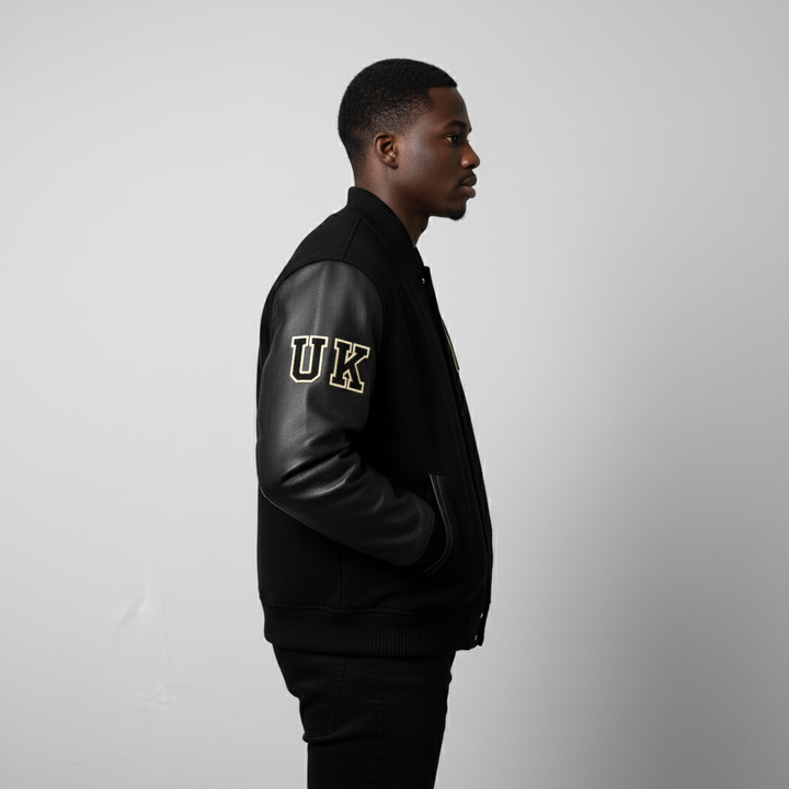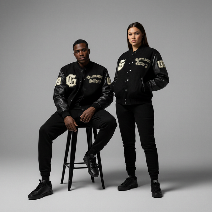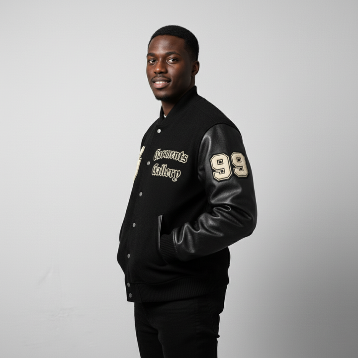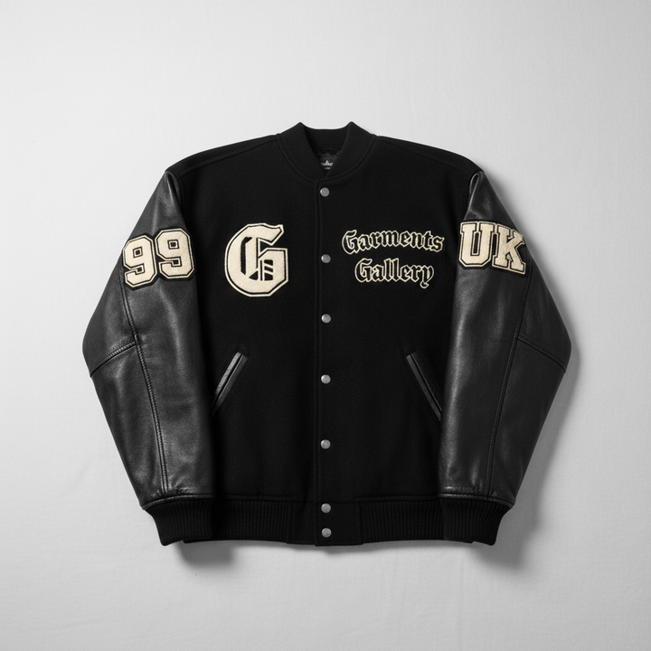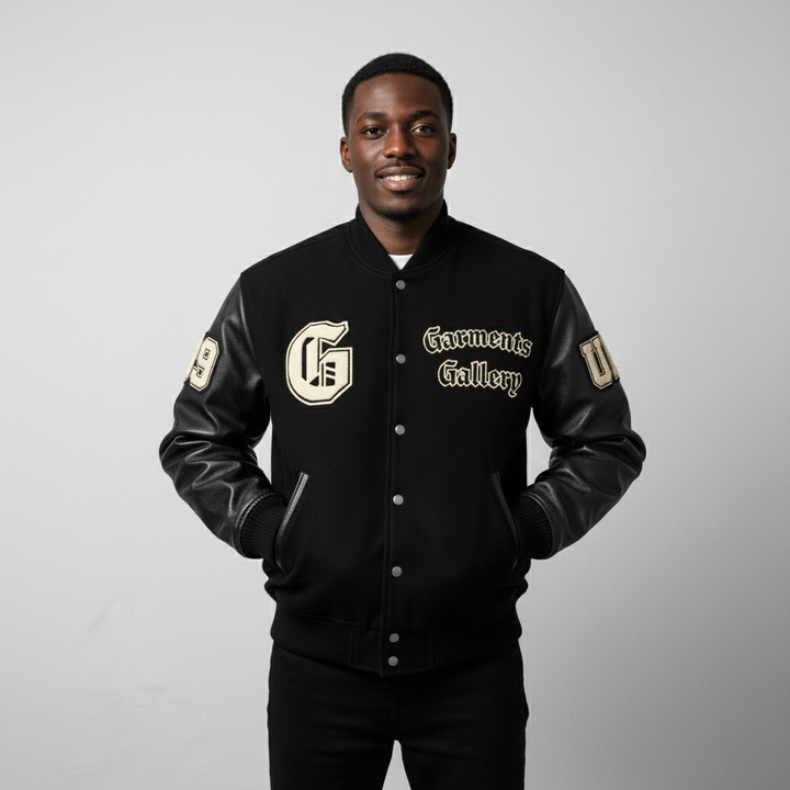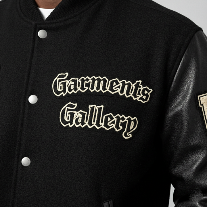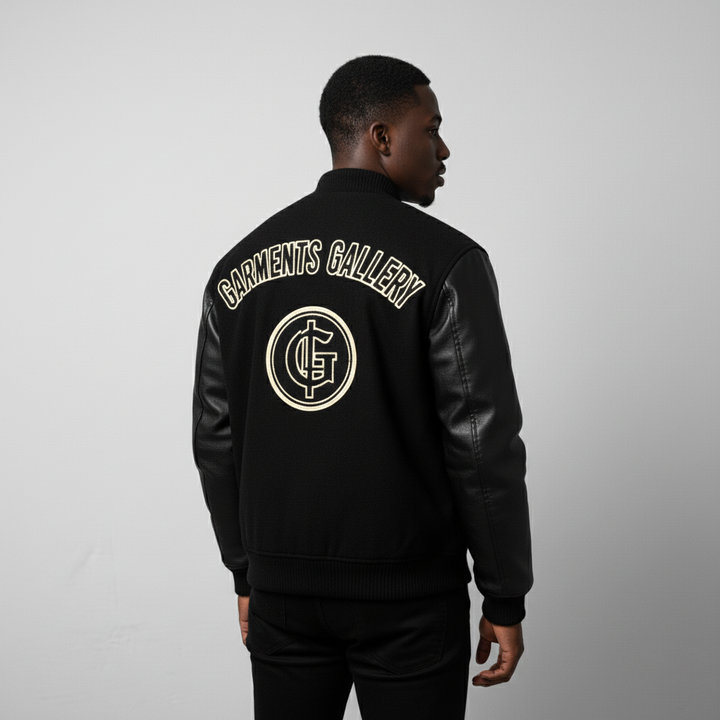 Step into the world of premium streetwear with the Garments Gallery Varsity Jacket.