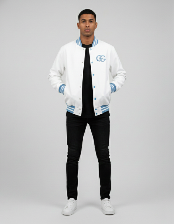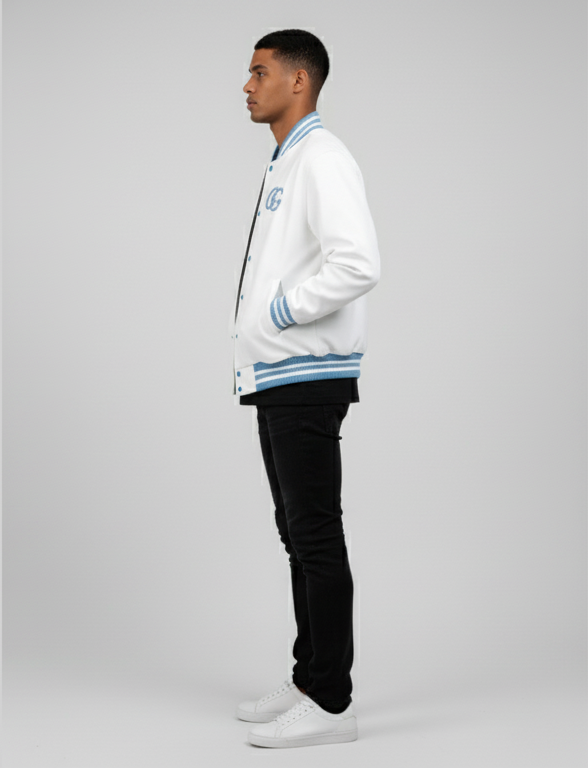 Step into the world of premium streetwear with the Garments Gallery Varsity Jacket.