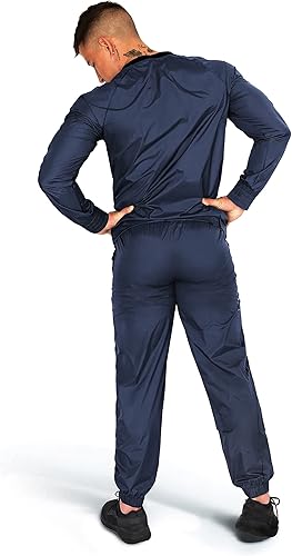 - 【Unique Design 】:The sauna suit for weight loss has elastic neckline and ankle cuffs, adjustable rubber wristband for maximum heat retention. Windproof and waterproof, it not only keeps body temperature but also accelerates perspiration. Reflective strips are available on both sides of the kangaroo pocket and in the zipper pocket of the pants to protect your phone or other personal items, as well as to keep you safe when exercising outdoors at night.